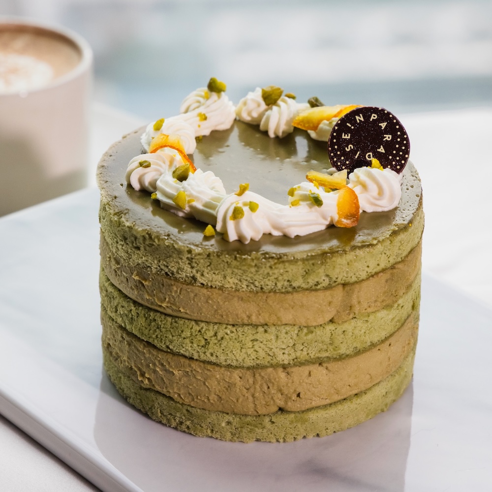 ◆ 開心果鮮奶油蛋糕 (4吋):$638 (已含10%服務費),需於用餐10日前預約。